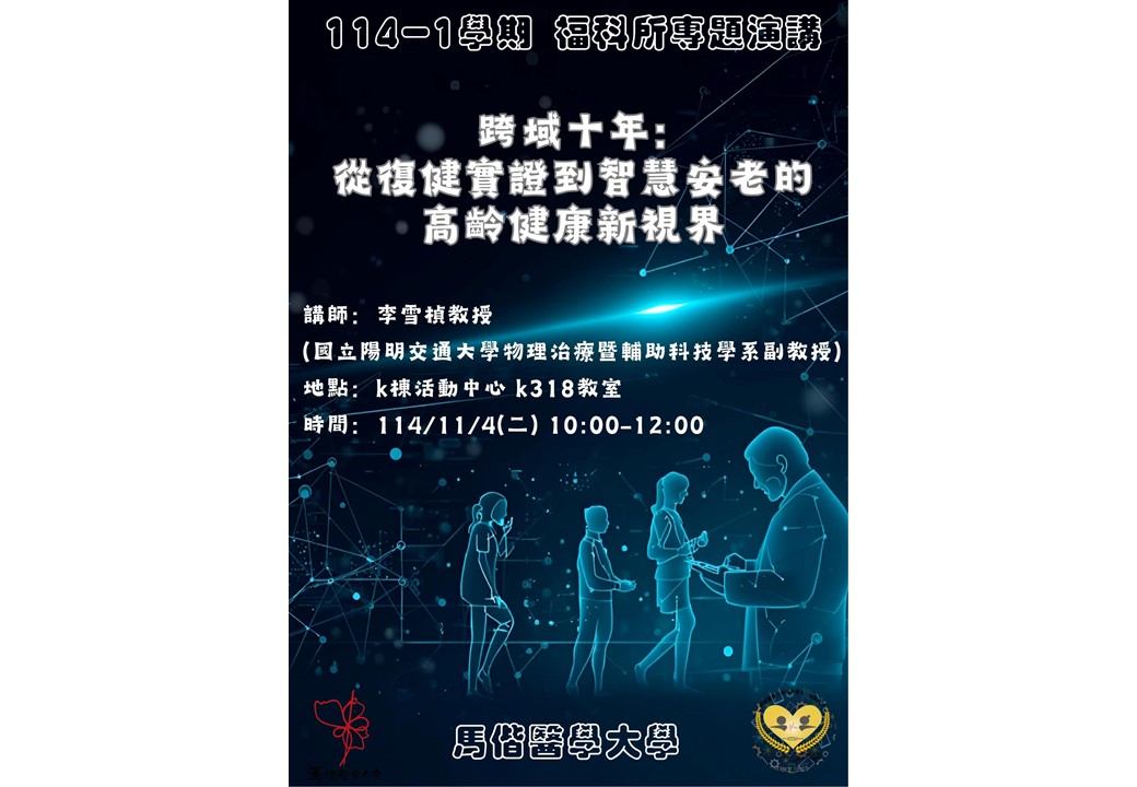 [2025/10/27]   【活動】福科所專題講座「跨域十年:從復健實證到智慧安老的高齡健康新視界」,歡迎參加!