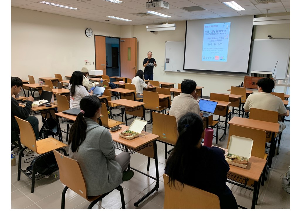 | 本校USR計畫「脫穎而出成為茭佼者」執行團隊與高齡福祉科技研究所於114年10月28日(星期二)在活動中心三樓K318教室舉辦專題講座,USR計畫主持人王學孝老師特別邀請到「二號空間」執行長江玉誠先生,與馬偕醫學大學師生分享三芝地區的地方創生經驗與人因設計的實踐。江執行長從多年的在地經驗出發,介紹了三芝的農產特色與各類社區活動,包含與馬偕醫學大學合作的農事體驗課程,讓學生能理解農村的勞作,了解農民工作的真實樣貌與辛勞。