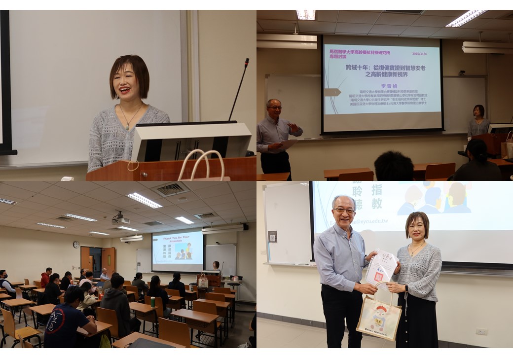 為拓展師生在高齡健康照護與智慧科技應用上的視野,高齡福祉科技研究於114年11月4日(星期二)活動中心三樓K318教室舉辦專題講座,特別邀請國立陽明交通大學物理治療暨輔助科技學系李雪楨副教授蒞臨演講,講題為「跨域十年:從復健實證到智慧安老的高齡健康新視界」,本次講座吸引了眾多師生踴躍參與。